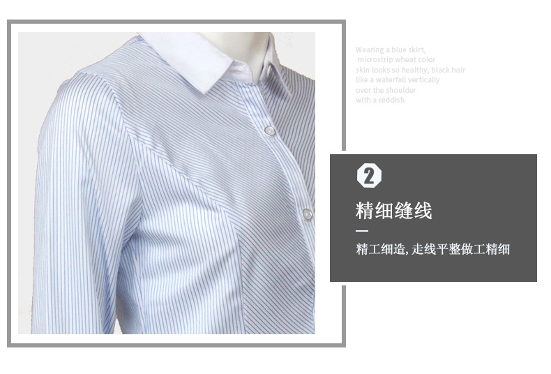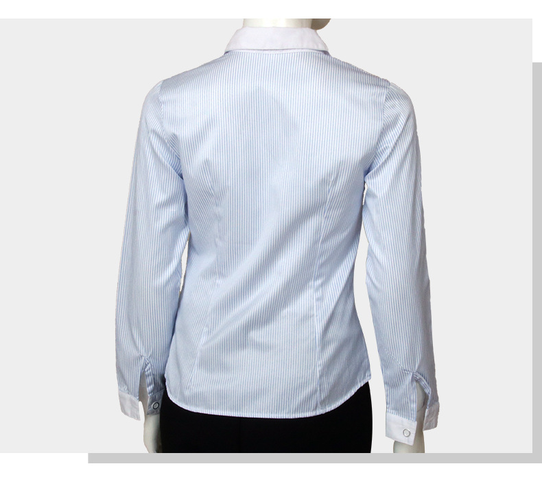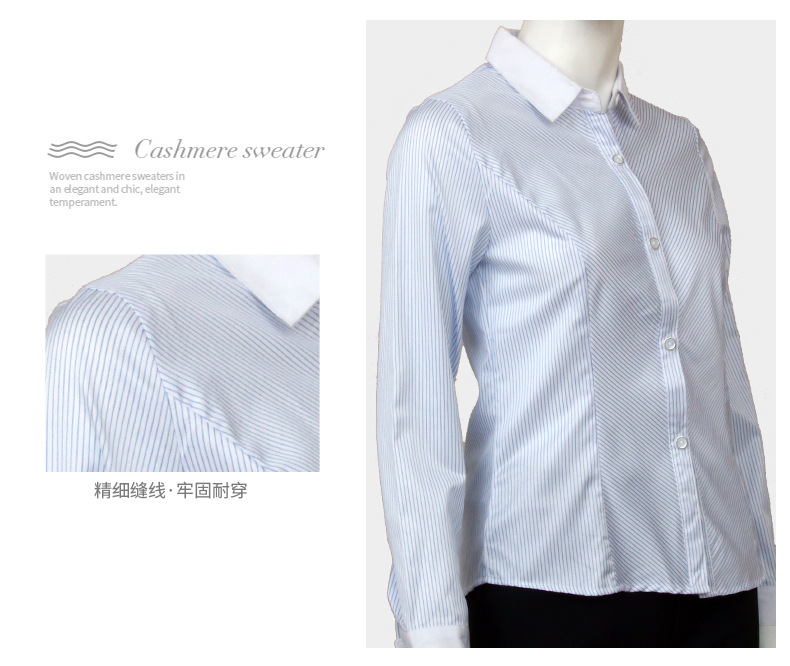 袖長 | 長袖 | 工藝 | 印花/印染 | 貨號 | 白領藍斜條女長襯 |